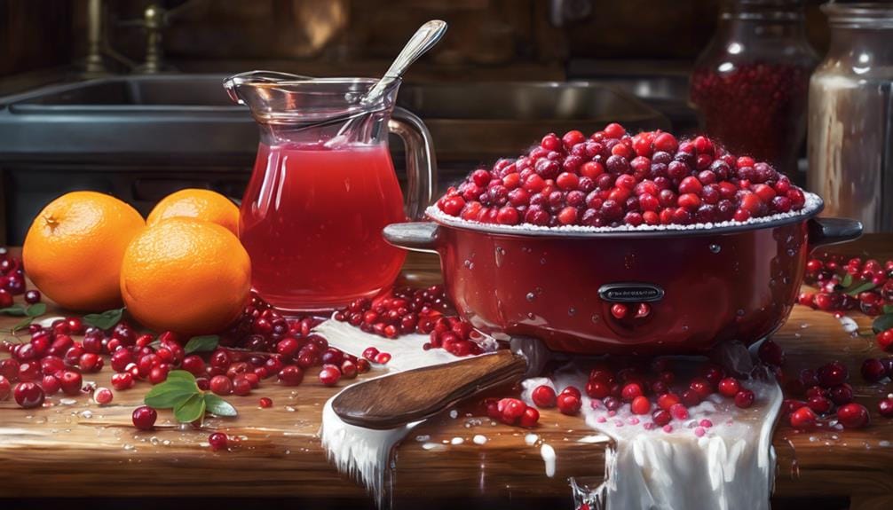 As your cranberry sauce simmers away, it’s important to stir occasionally to guarantee even heat distribution and prevent any sticking. Trust me, no one wants a burnt bottom on their sauce!