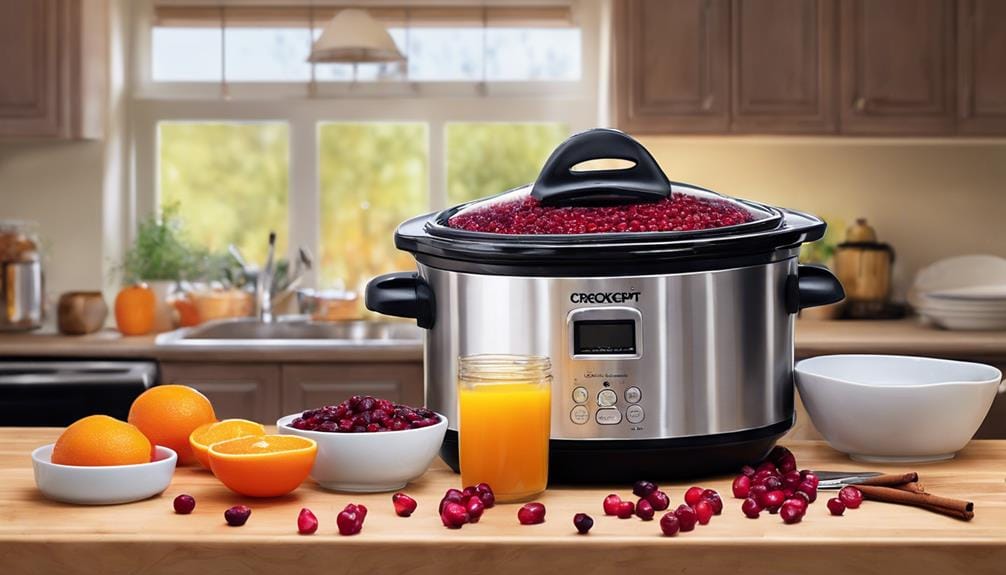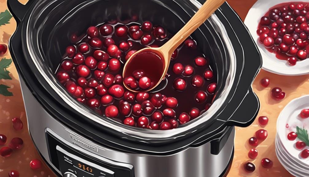 You’ll want to select the low temperature on your crockpot settings, which allows those flavors to mingle and party together for hours. Trust me, letting them hang out for 3-4 hours will transform your cranberry sauce into a heavenly dish that’ll make your taste buds do a happy dance!