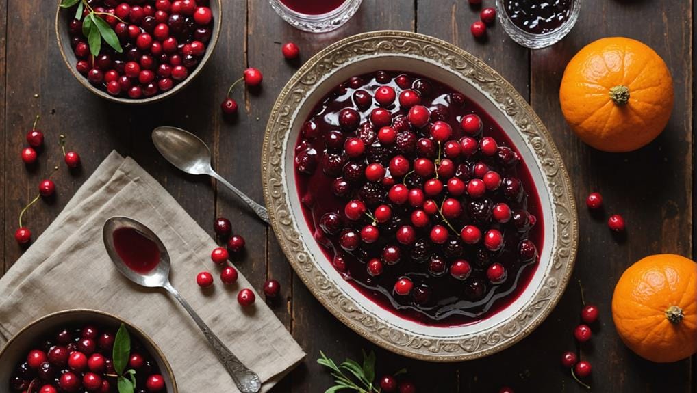 You can elevate your cranberry sauce with serving pairings like turkey or Brie, explore flavor enhancements such as spices, present it in elegant dishes, or try recipe variations like adding jalapeños for a kick. Enjoy the freedom!