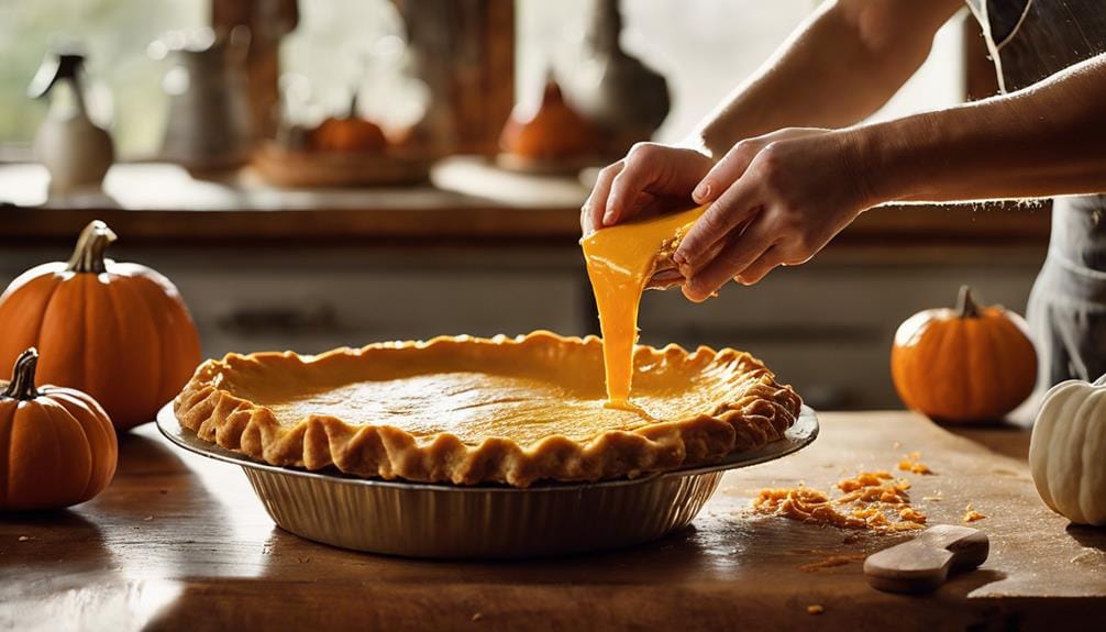 As the pie bakes, the delightful aroma of pumpkin and spices fills your kitchen, making it feel like autumn, even in the summer. You might want to try some innovative baking techniques like covering the crust edges with foil if you notice they're browning too quickly.