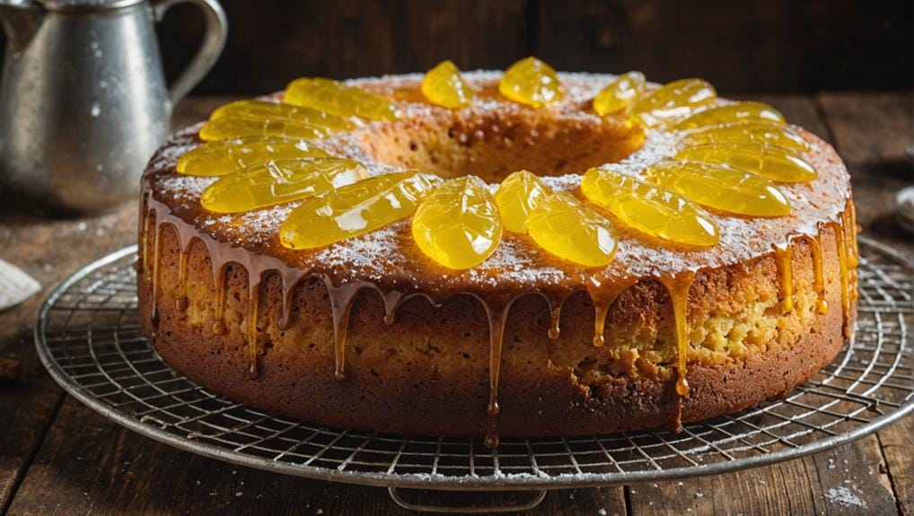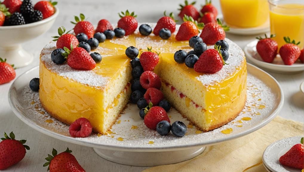 Sundrop Cake has roots in Southern cuisine, where the use of soda in baking became popular for adding moisture and flavor. You mightn't know this, but the cake's citrus origins can be traced back to the creative spirit of Southern bakers who loved to experiment! They took traditional cake recipes and gave them a refreshing twist by adding soda, which made their creations rise with a delightful fizz and a burst of flavor.