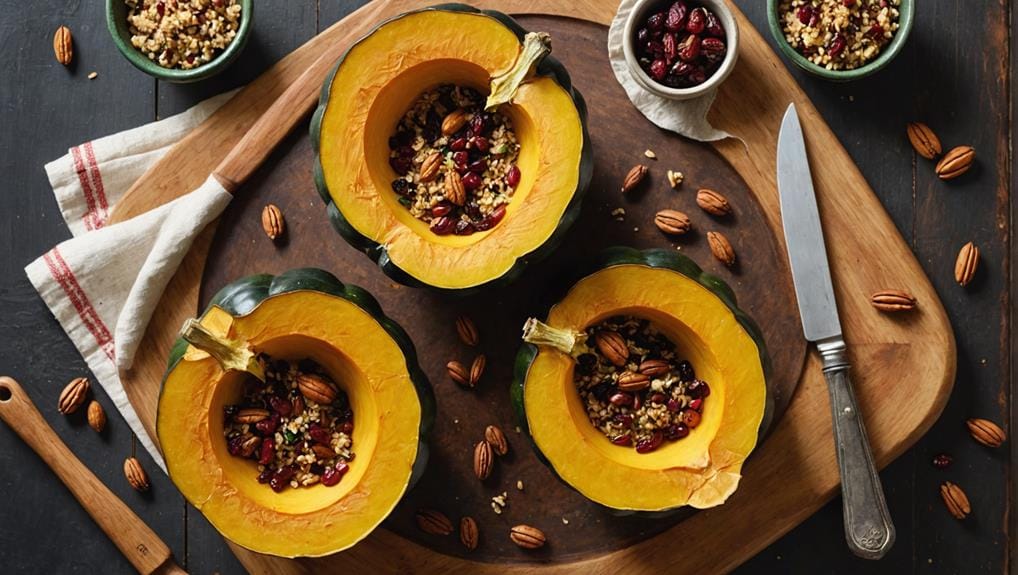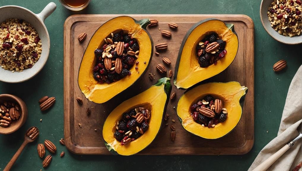 You’ll want to pack it in there, but not too tight—there’s no need to stress out the squash! Mix in some dried cranberries and toasted pecans for those delightful flavor enhancements. Trust me, these stuffed variations are going to steal the show!